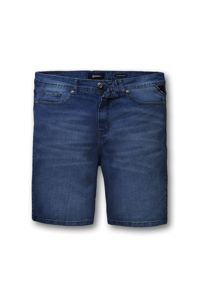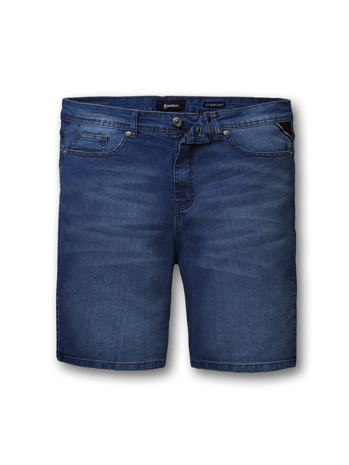 Bermuda calce amplio. Tejido índigo Azul. Relojero con marca. Lavado en tono oscuro.