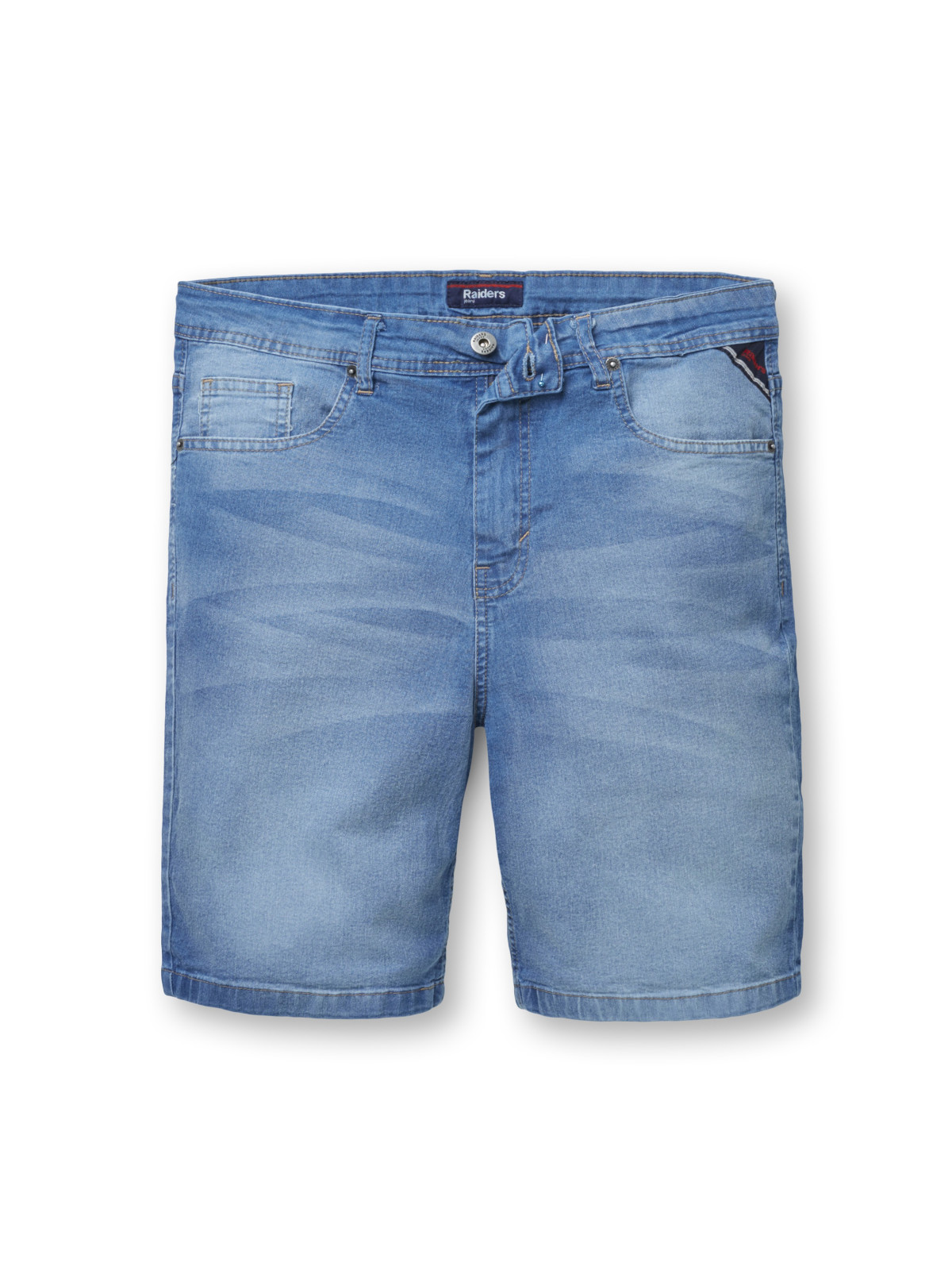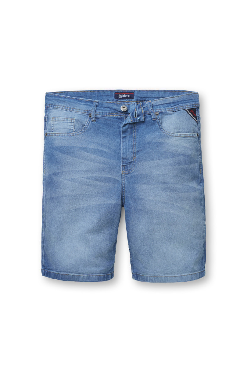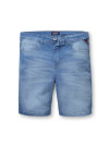 Bermuda con calce amplio. Tejido índigo Azul. Relojero con marca. Lavado en tono medio.