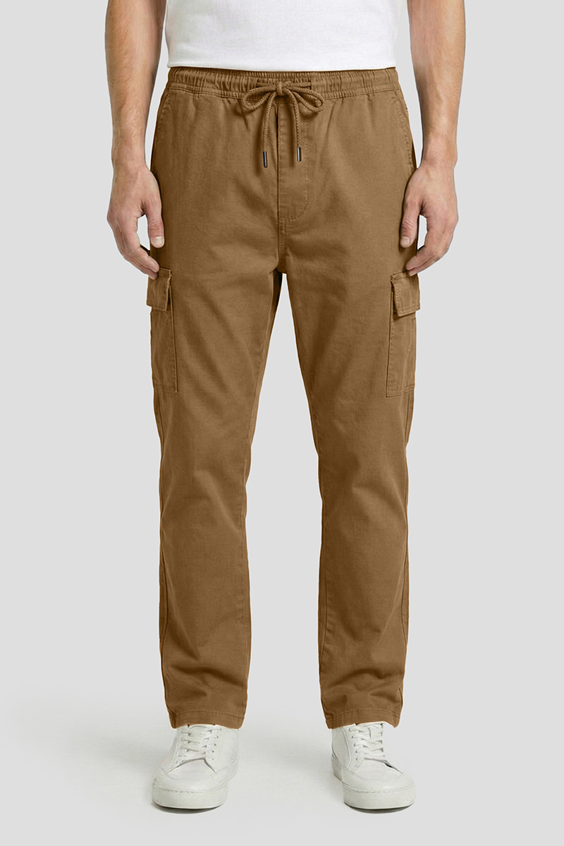 Descripción: Pantalón de gabardina premium. Cintura con elastico y cordón. Bolsillos cargo laterales. Cartera con cierre.