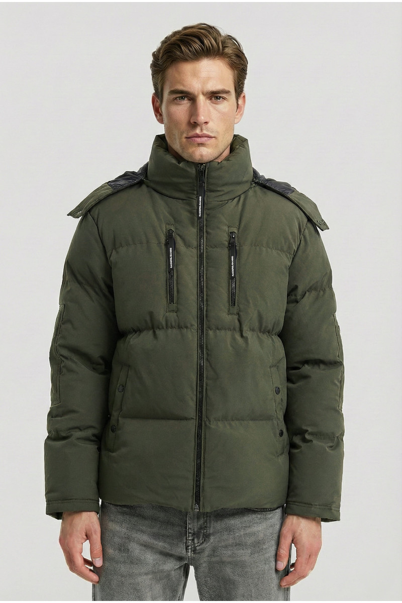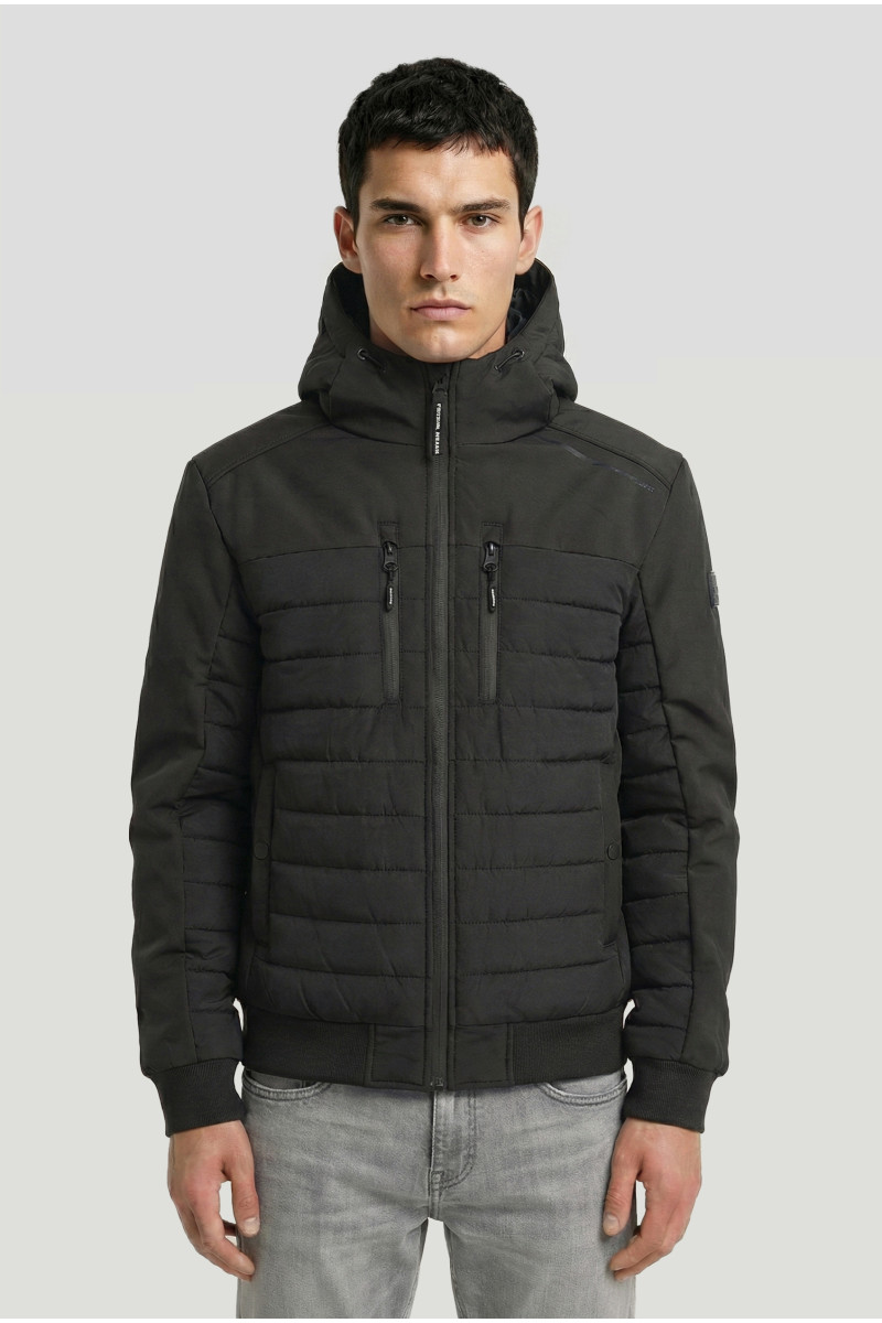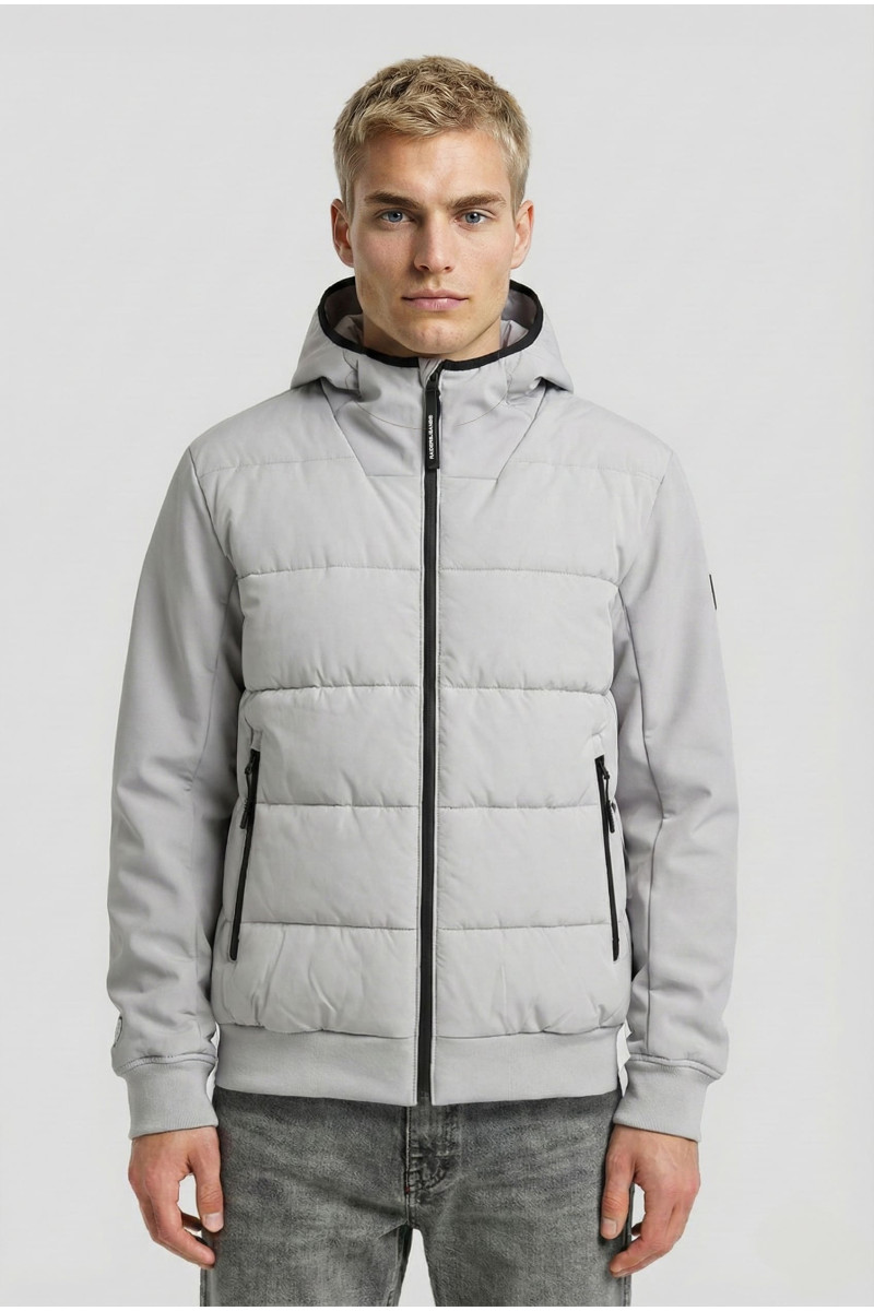 Descripción: Campera combinada en Soft Sell y Nylon matelaseado con puños tejidos. Capucha , cierres engomados impermeables. Frente con 4 bolsillos.