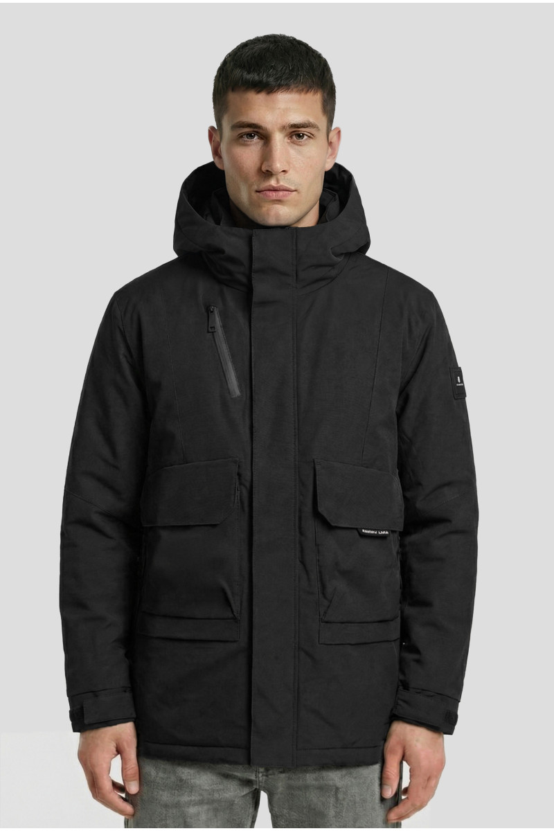 Descripción: Campera cinco bolsillos y capucha desmontable, con puño tejido. Carteron interno y etiqueta en manga de eco cuero grabados con la marca..