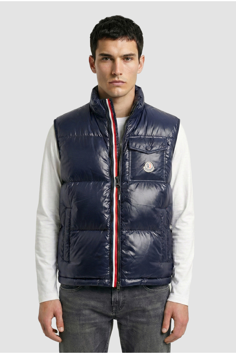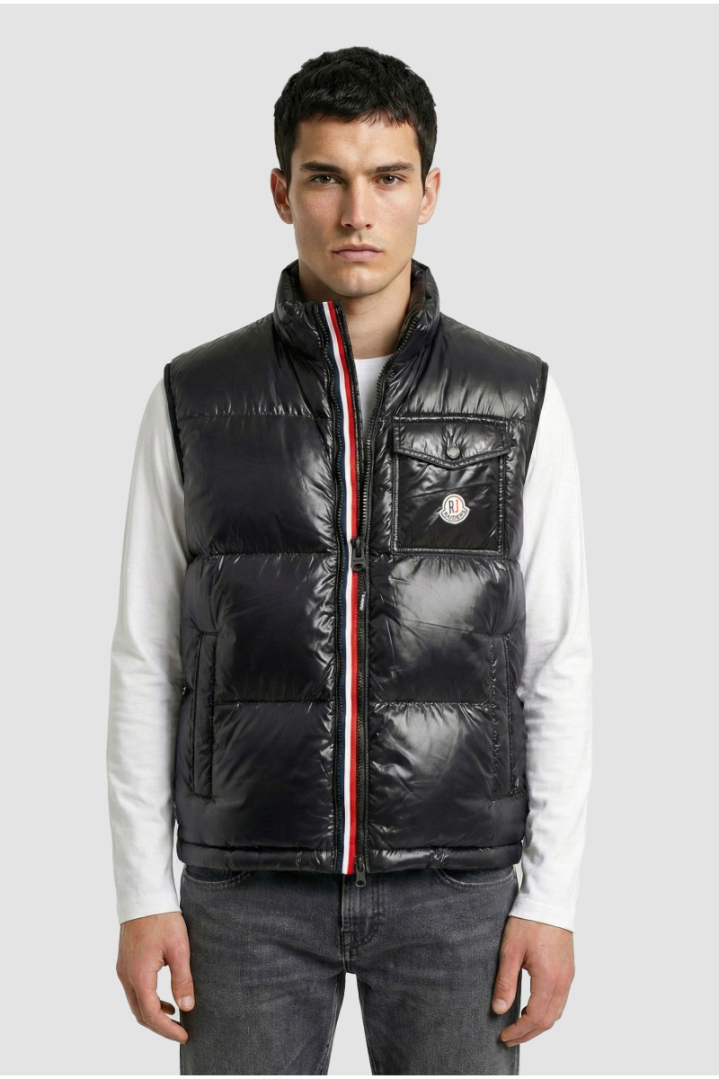 Descripción: Chaleco bastones anchos brillante, con doble cierre y aberura central con cinta tricolor. Bolsillo frente con escudo y broches con logo. Doble