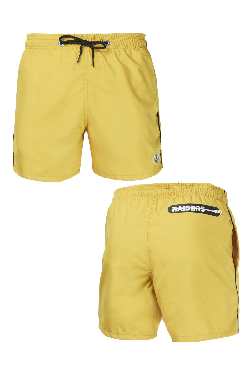 Short de baño liso, con cierres termosellados en el frente. Importado.