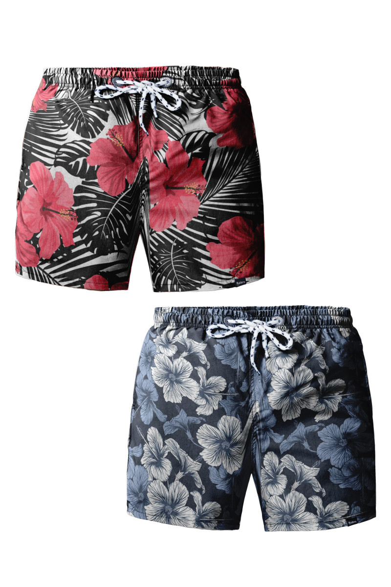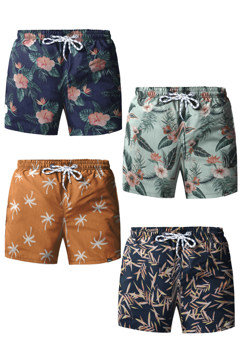 Short de baño sublimado con dibujo de pequeñas palmeras.