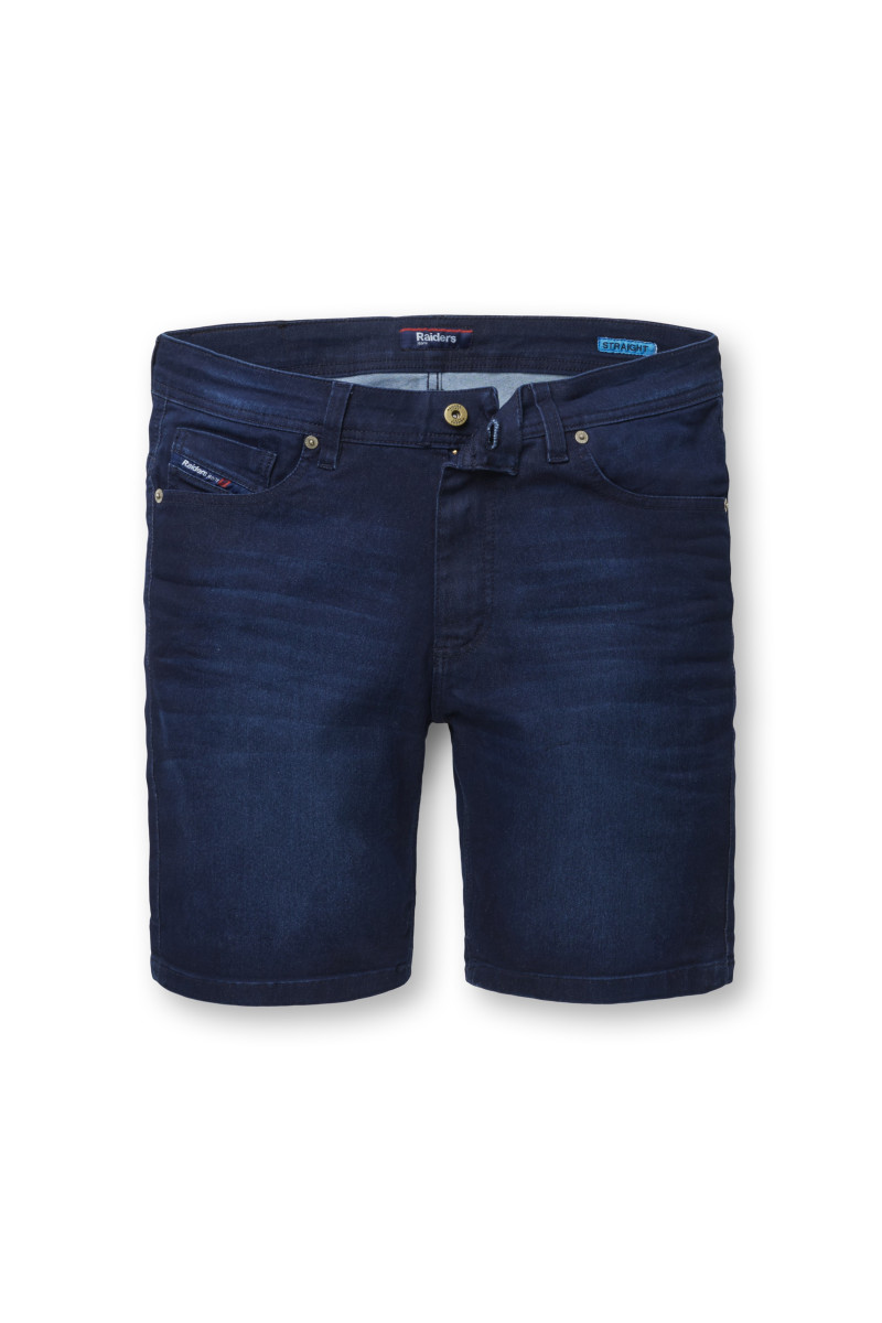 Bermuda calce Clásico. Tejido índigo Azul. Relojero con marca. Lavado en tono oscuro.