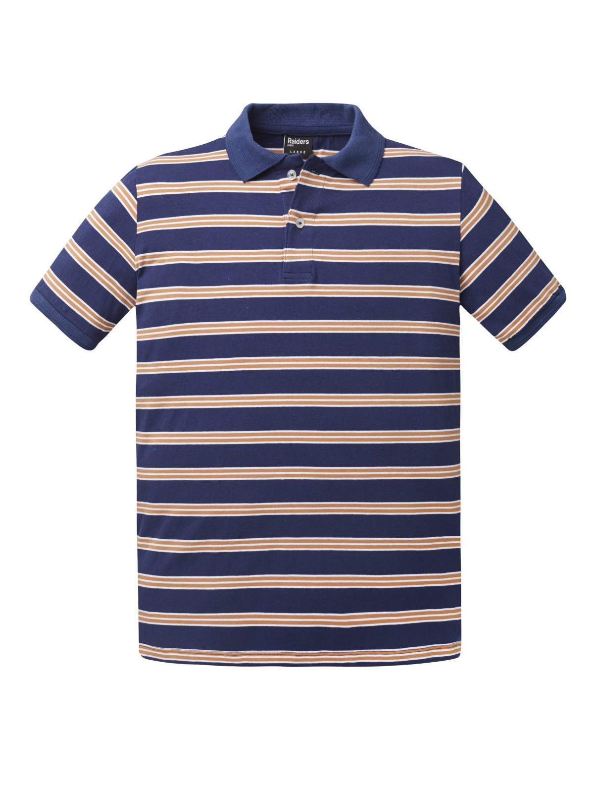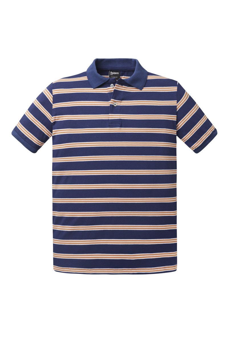 Chomba comfort rayada con cuello y puños tejidos. Logo bordado.