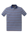 Chomba comfort rayada con cuello y puños tejidos. Logo bordado.