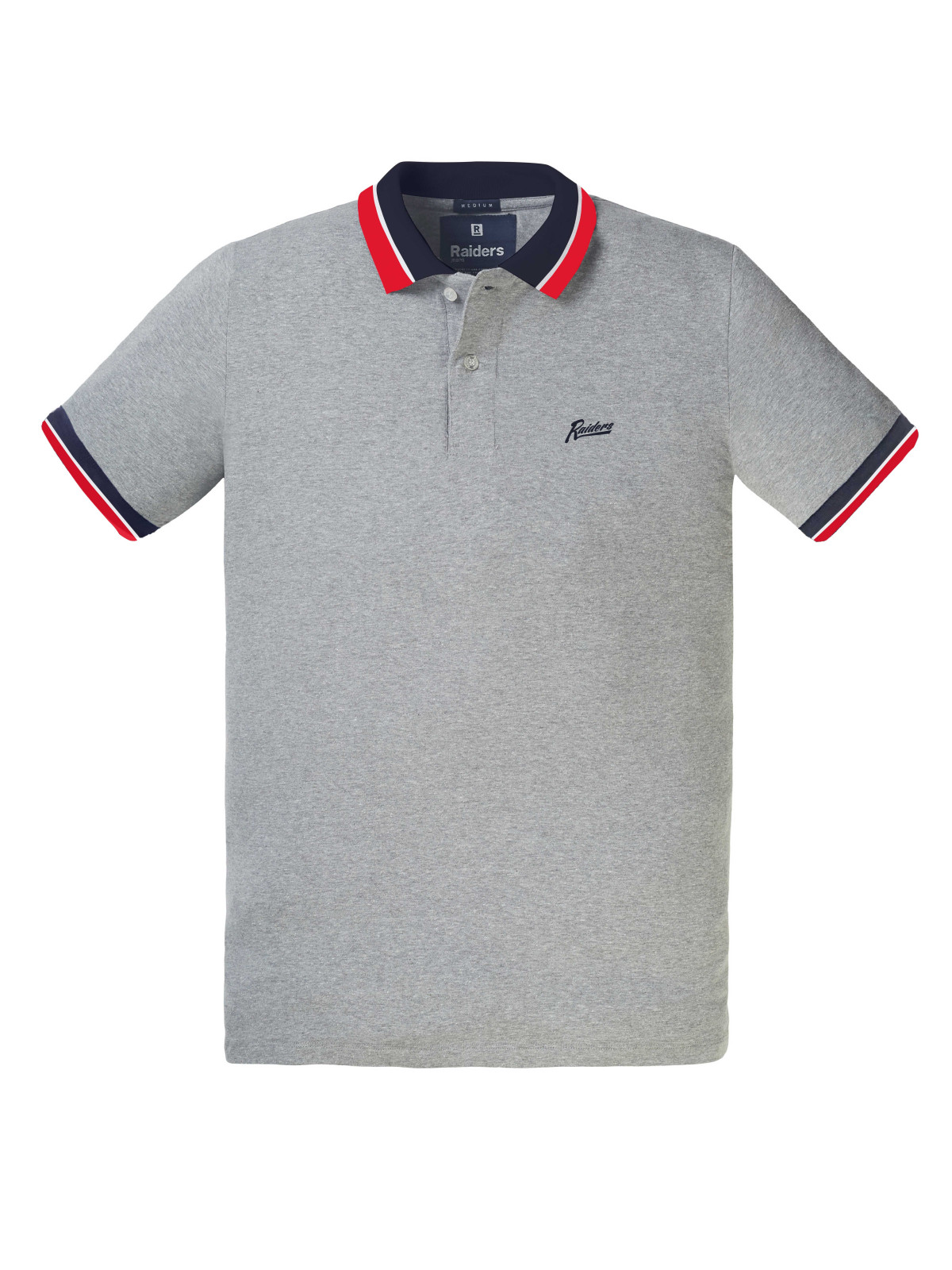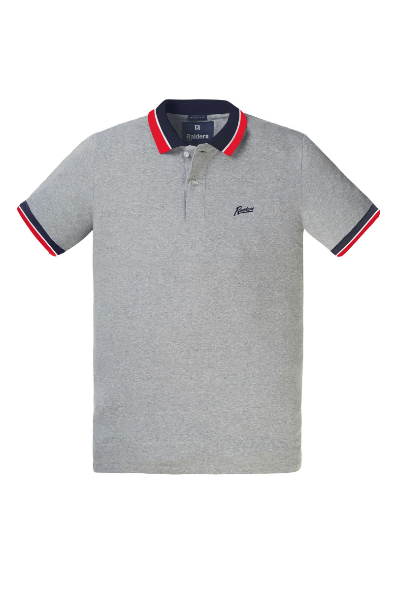 Chomba con cuello y puños tejidos rayados contratono; Marino-Blanco-Rojo para todas las bases de color.