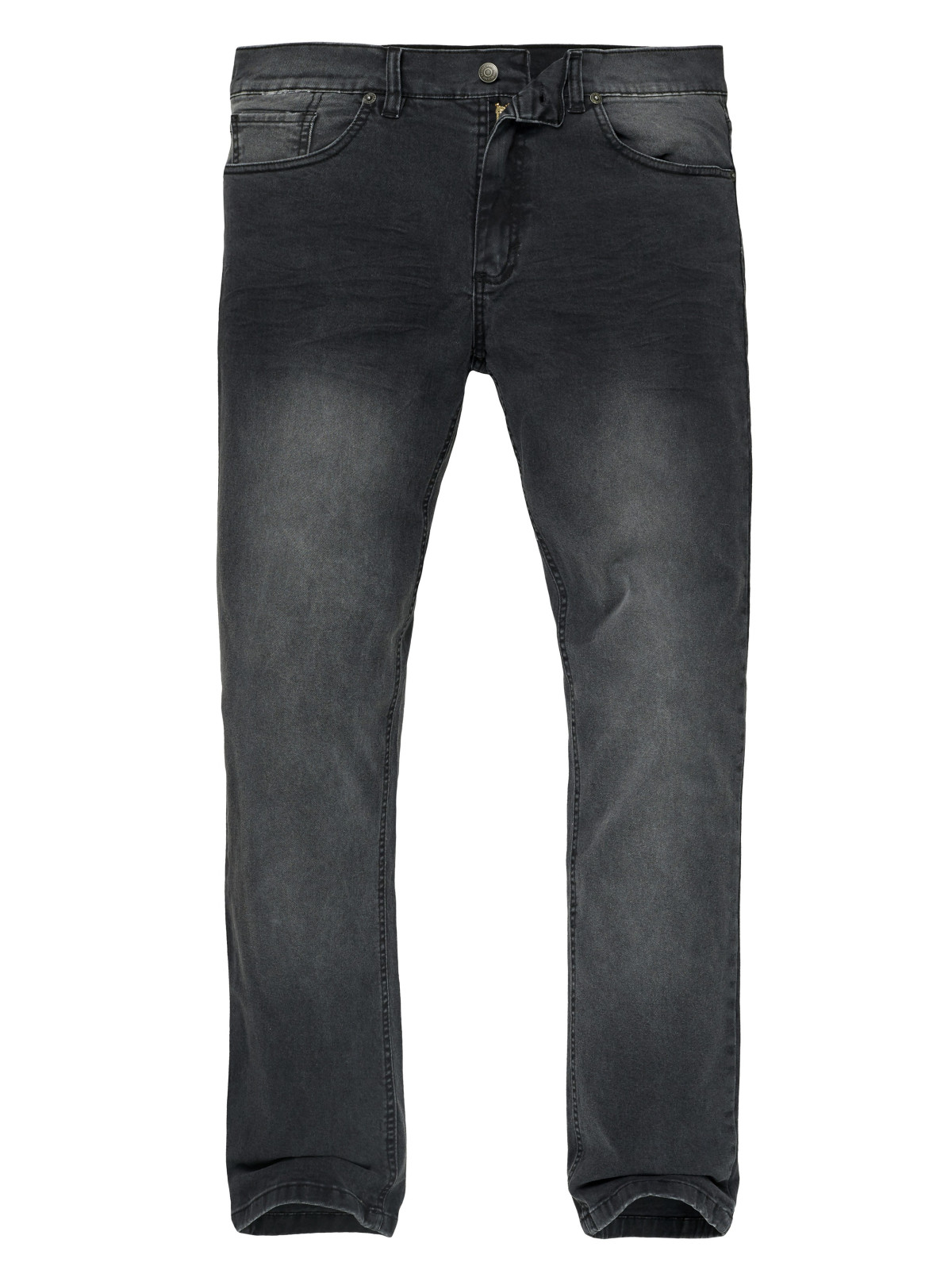 Jean Calce Amplio, pierna recta, bota mas ancha. Cartera con cierre. Lavado en tono oscuro,black denim , localizado con bigotes 3D.
