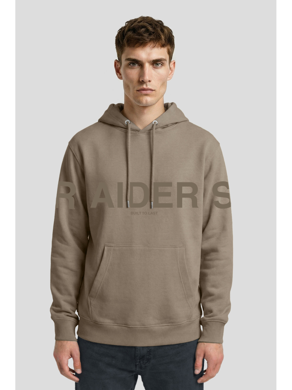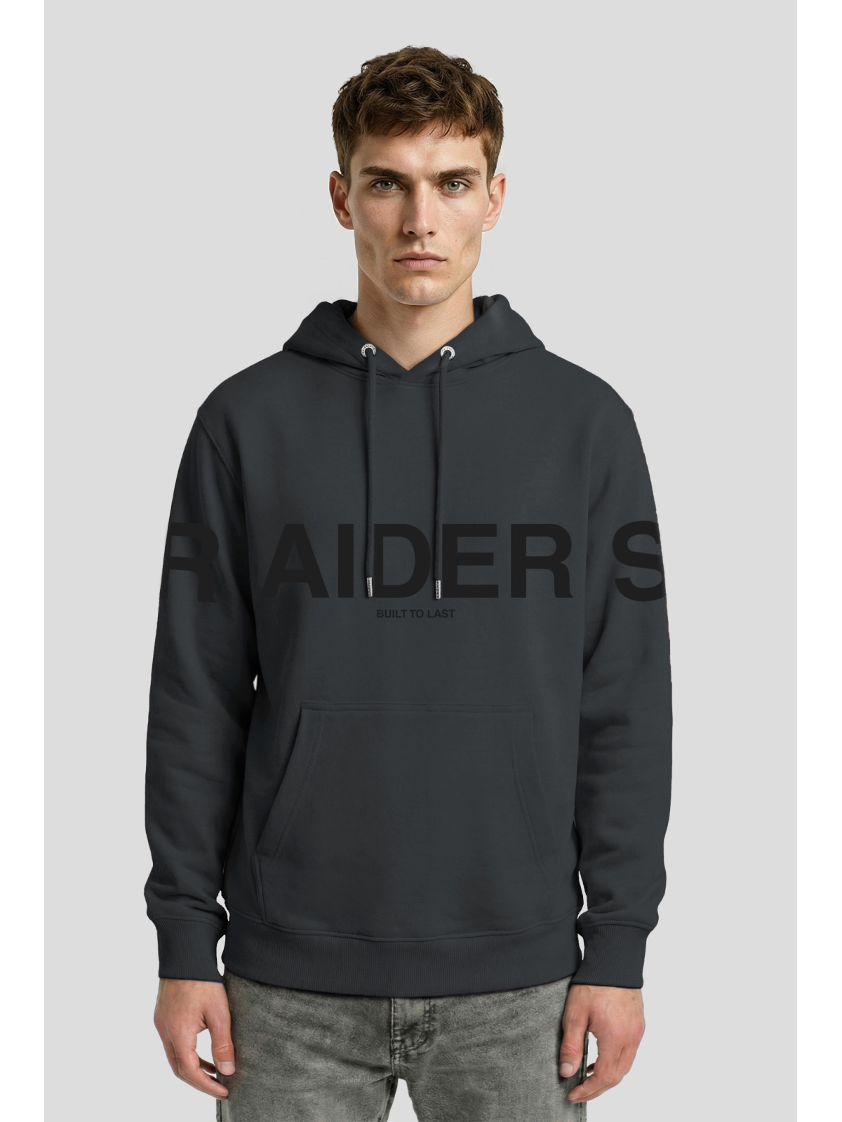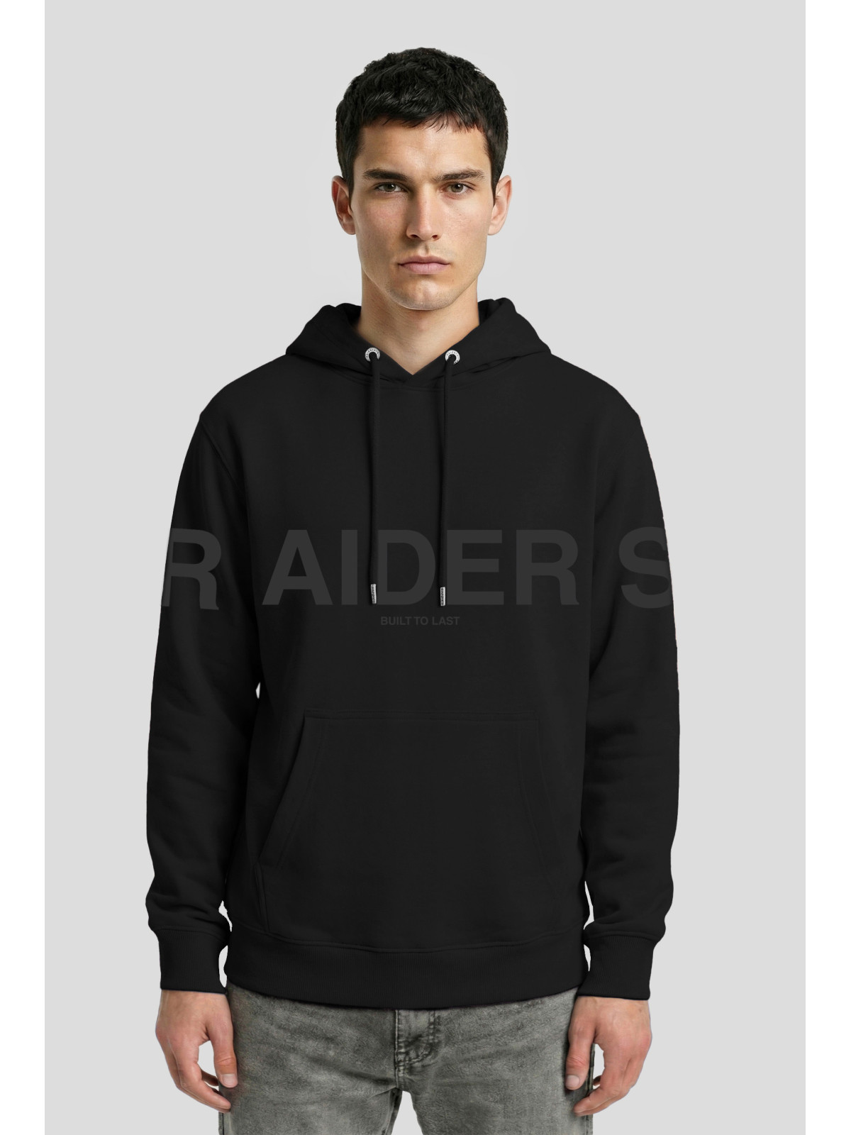 Descripción: Canguro con estampa RAIDERS engamada que se reparte entre el frente y mangas.