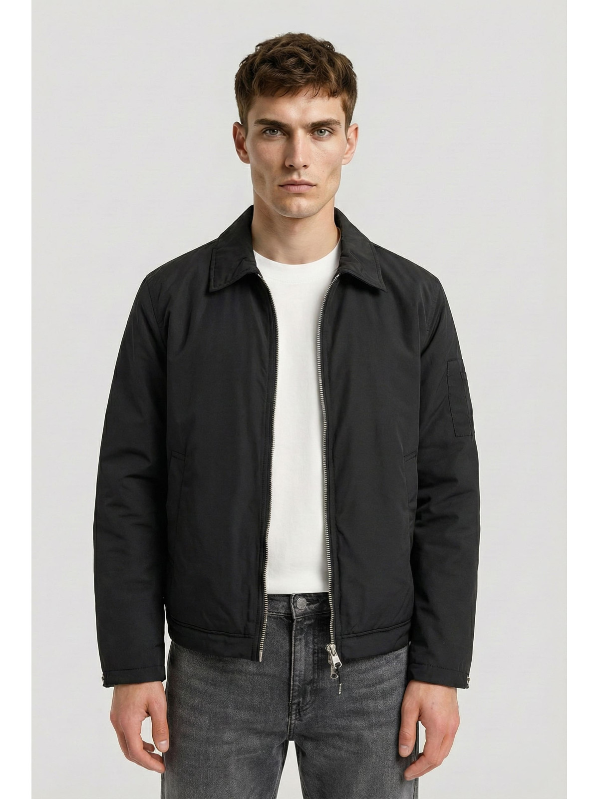 Descripción: Campera combinada en Soft Sell y Nylon matelaseado con puños tejidos. Capucha , cierres engomados impermeables. Marca en cierres, tira cierres y etiqueta de goma.