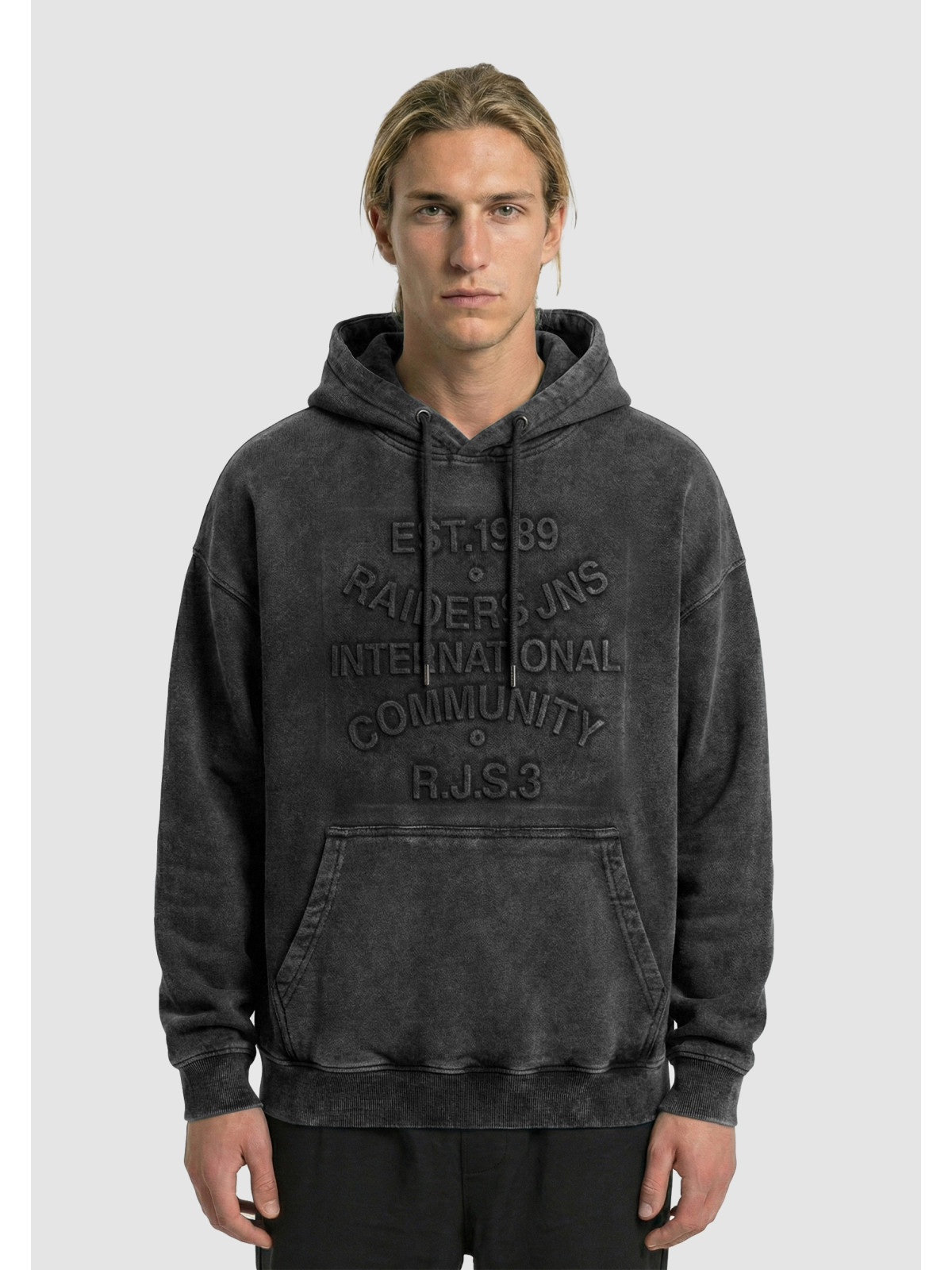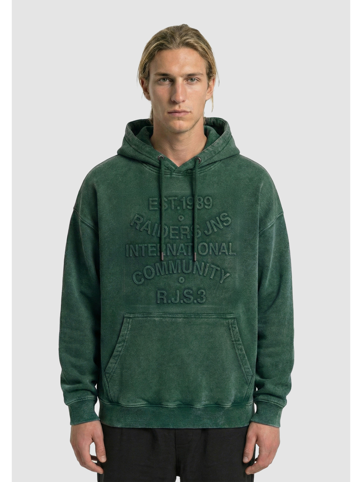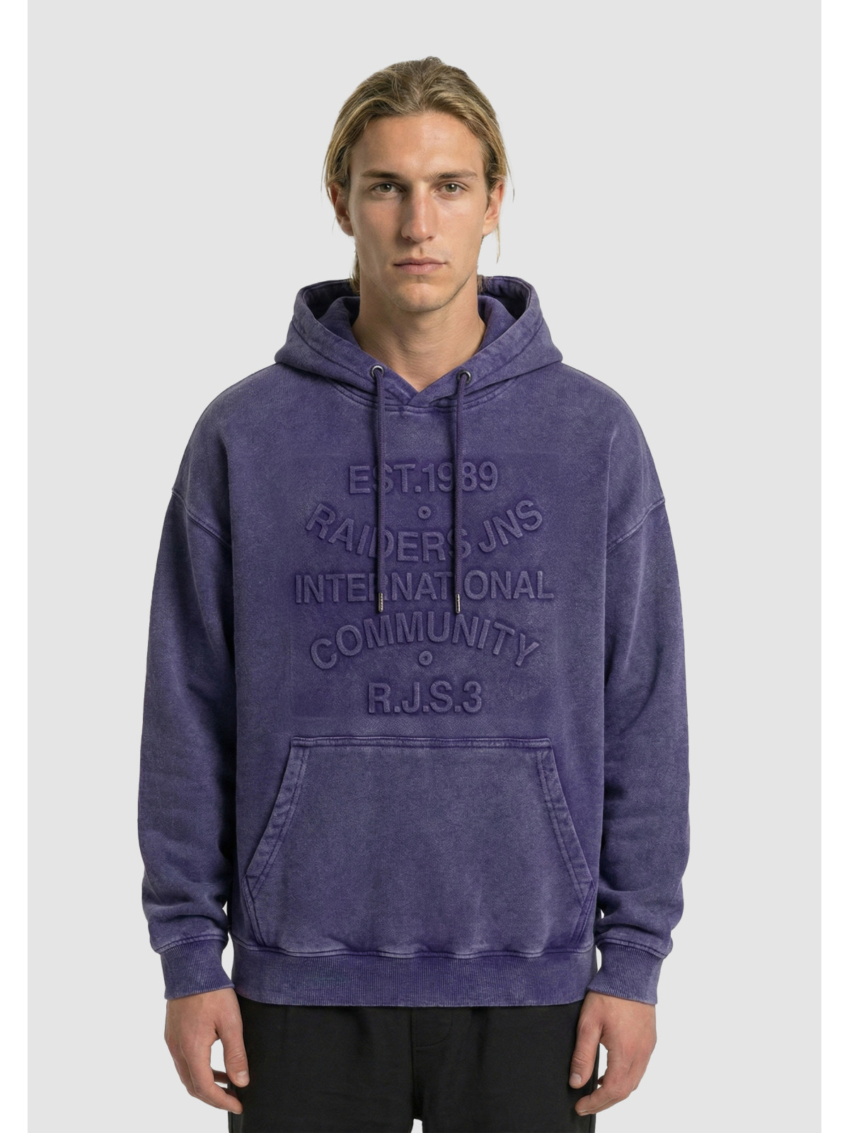 Descripción: Canguro gofrado en el frente con proceso de gastado Laundry.