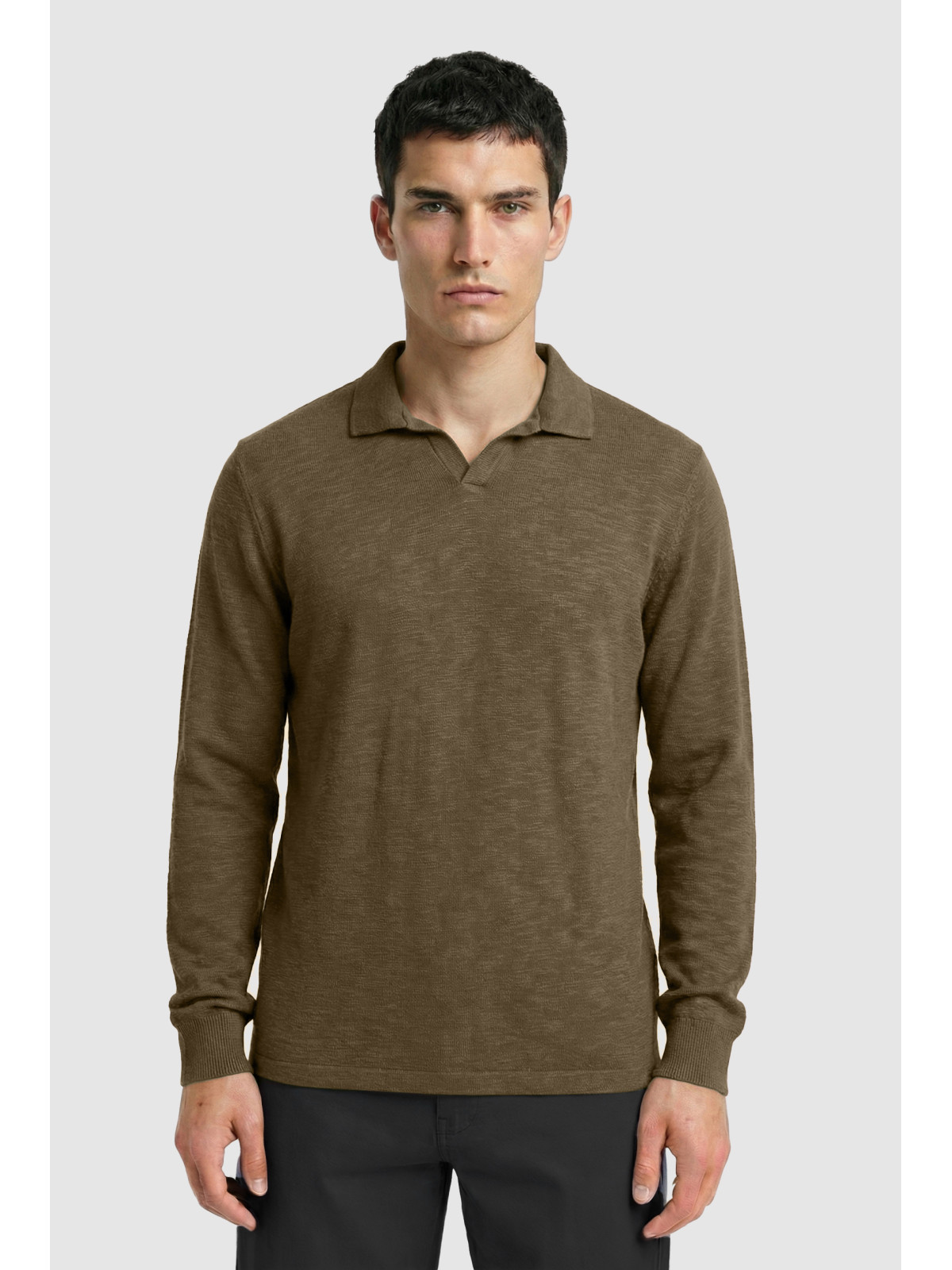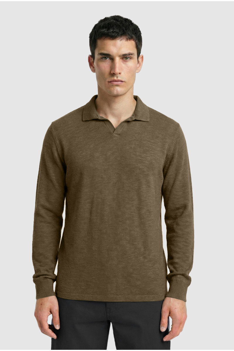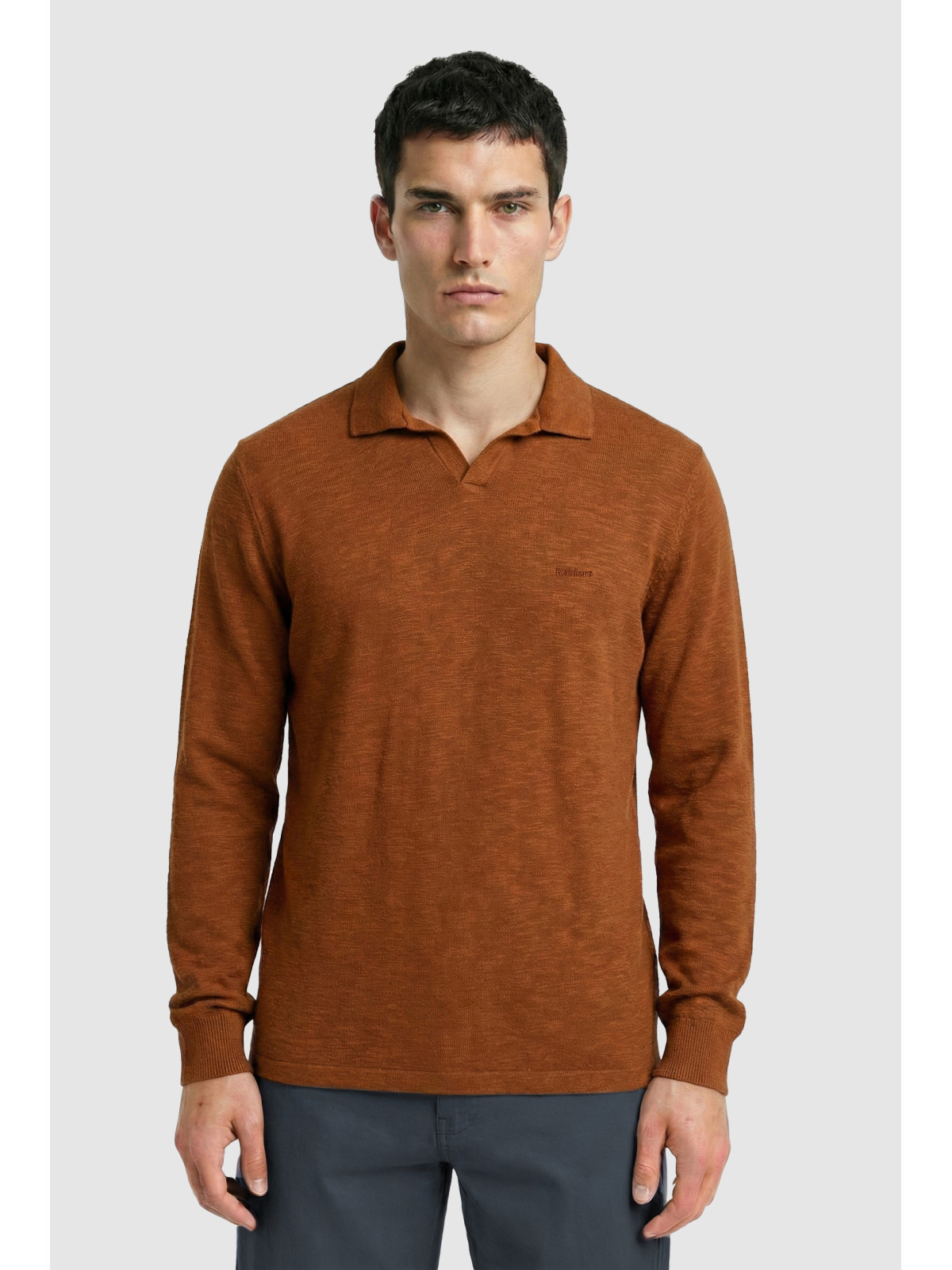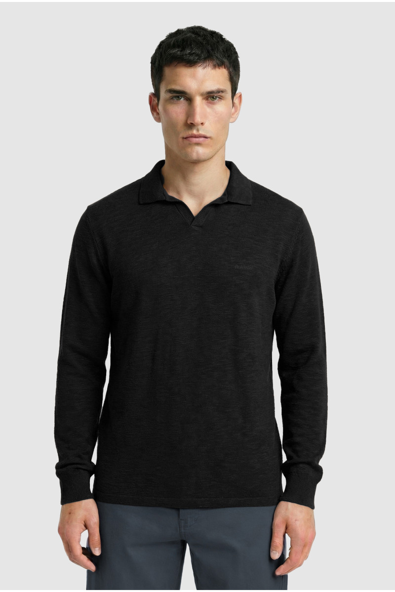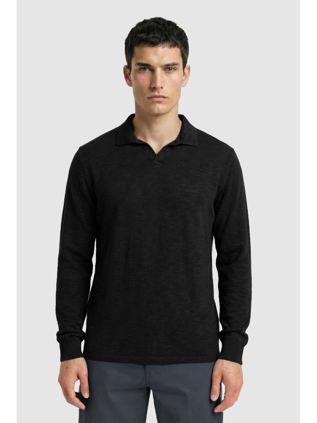 Descripción: Chomba cuello abierto en textil diferenciado Flamé. Logo bordado al tono.