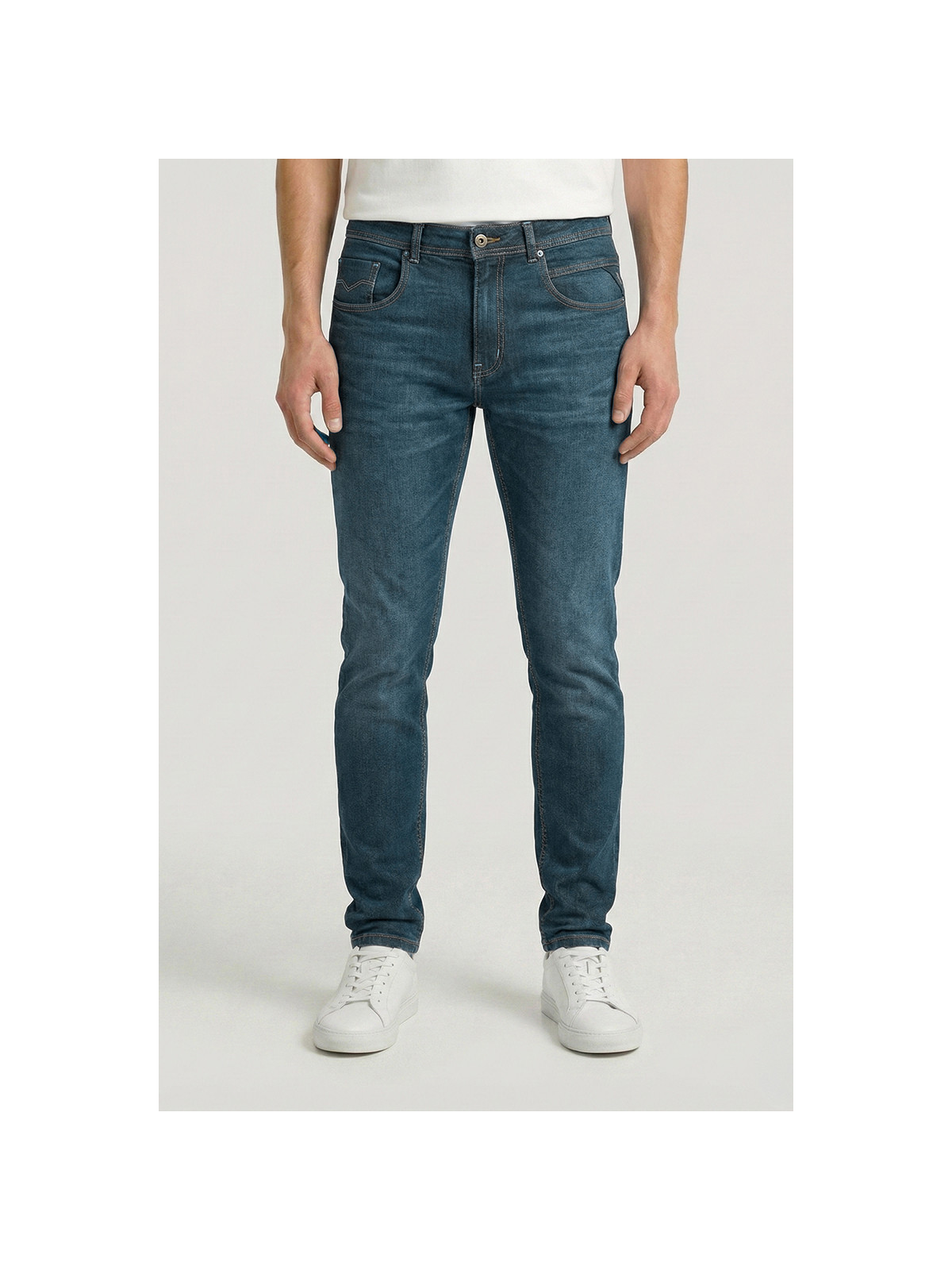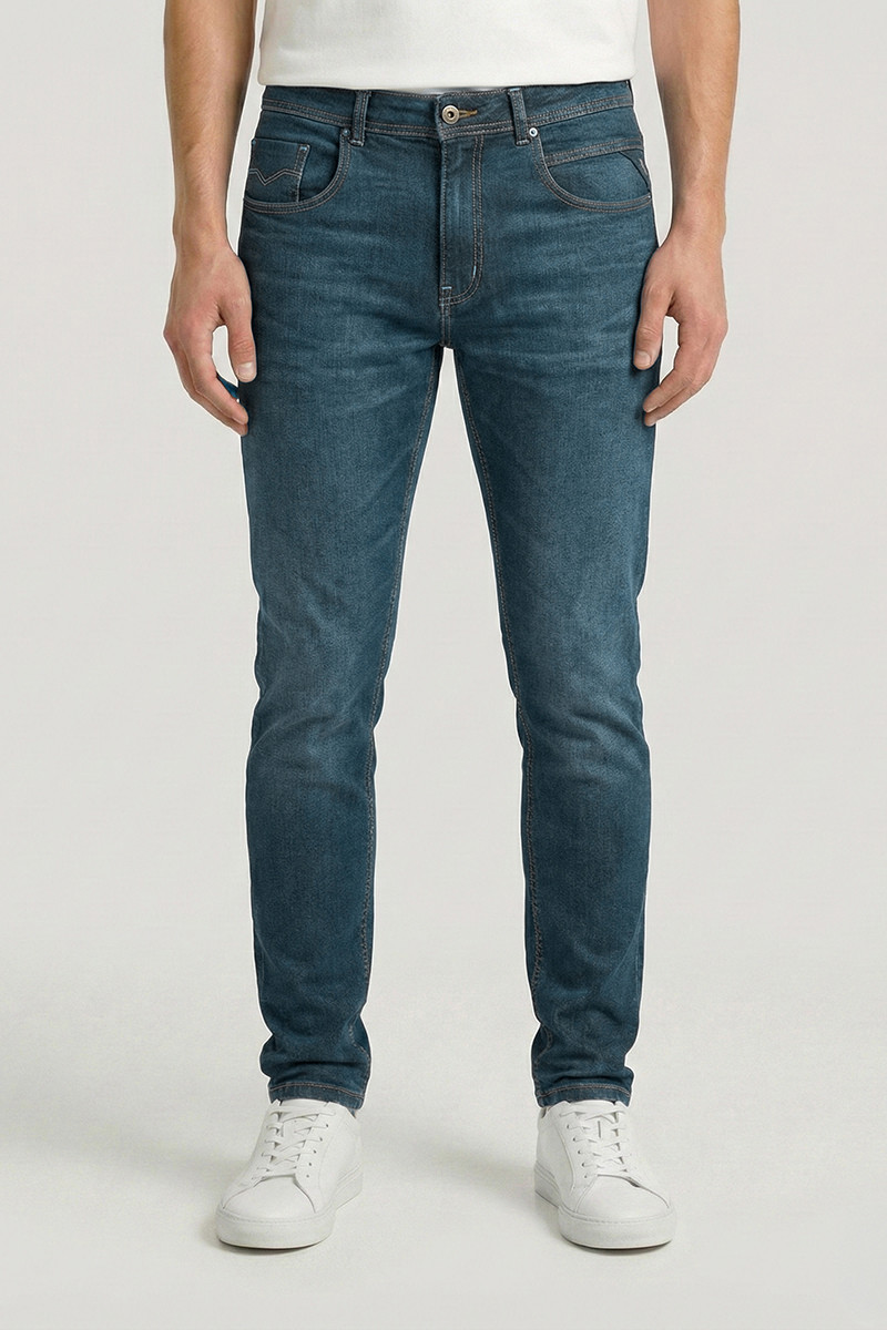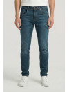 Descripción: Jean modelo Anbass . Lavado con tono medio, localizado y matizado con tono verdoso . Bordado Raiders en el triangulo lateral .