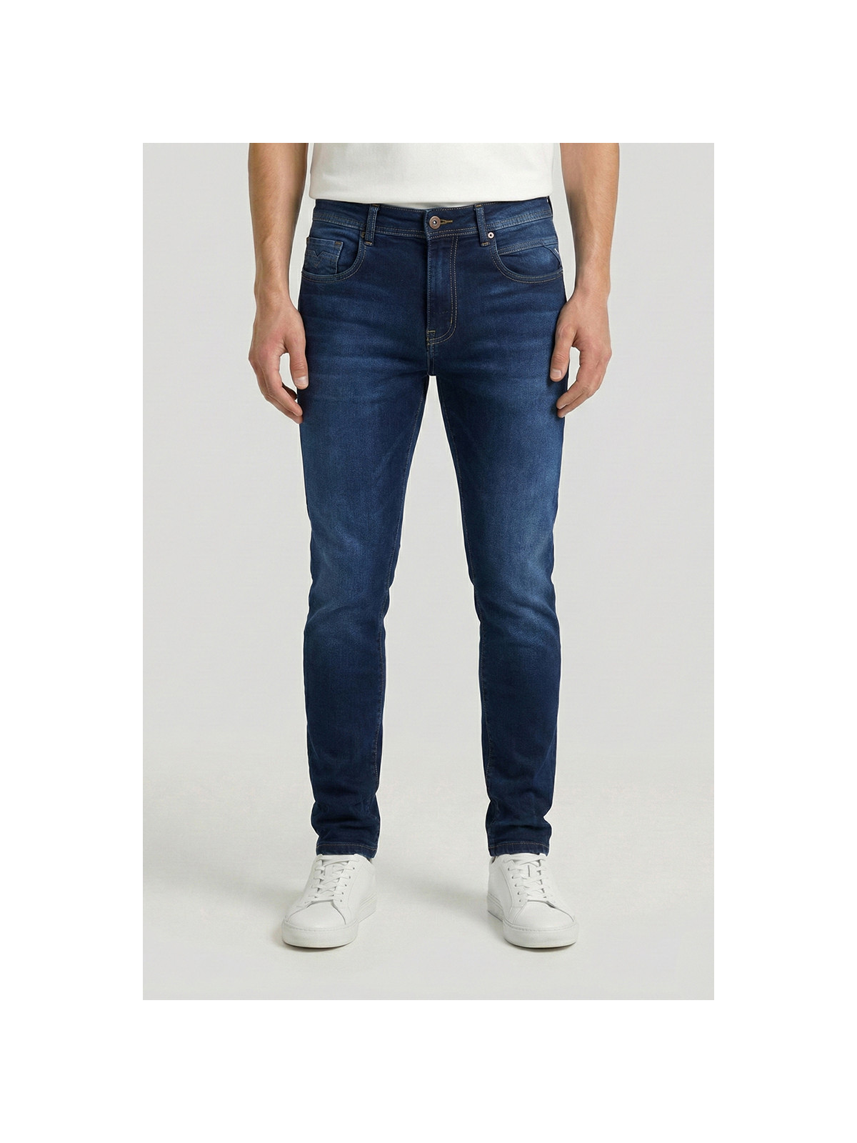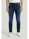Descripción: Jean modelo Anbass . Lavado con tono oscuro, sobre teñido azul y localizado. Bordado Raiders en el triangulo lateral