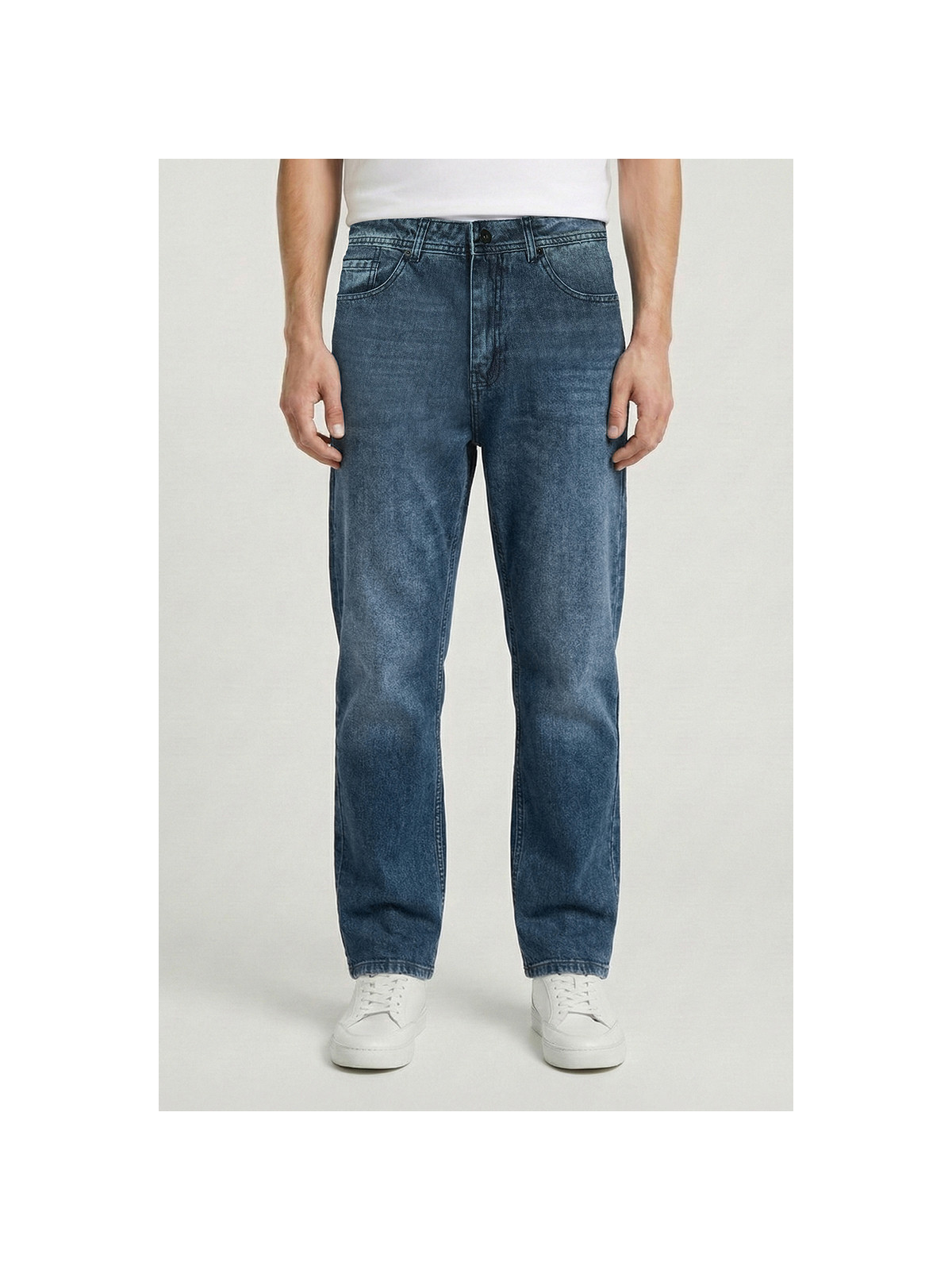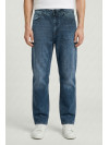 Descripción: Jean modelo comfort tiro alto . Lavado en tono oscuro, localizado con bigote laser.