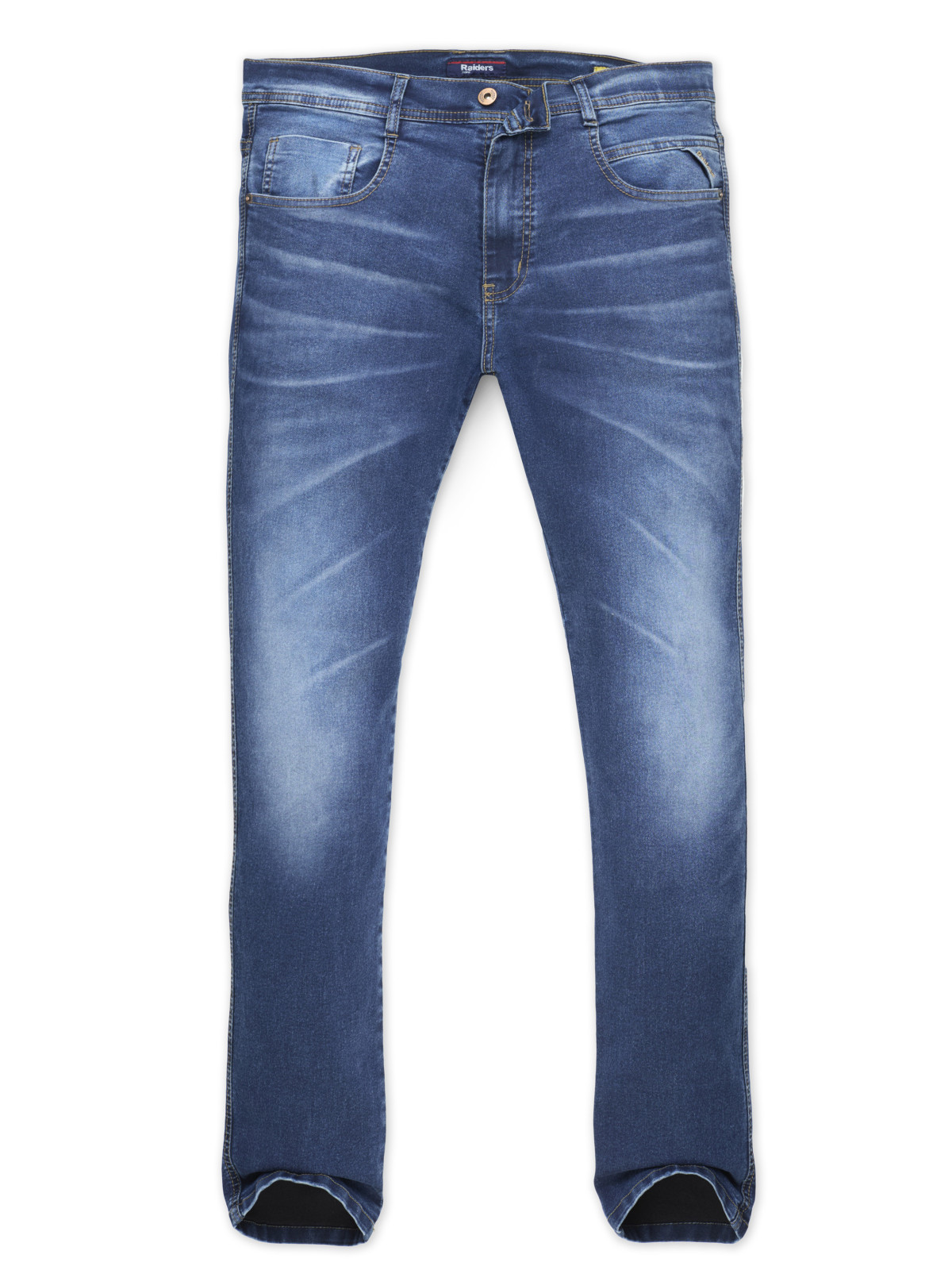 Jean modelo Anbass . Lavado con tono medio, localizado con bigotes más arrugas 3D. Bordado Raiders en el triangulo lateral.