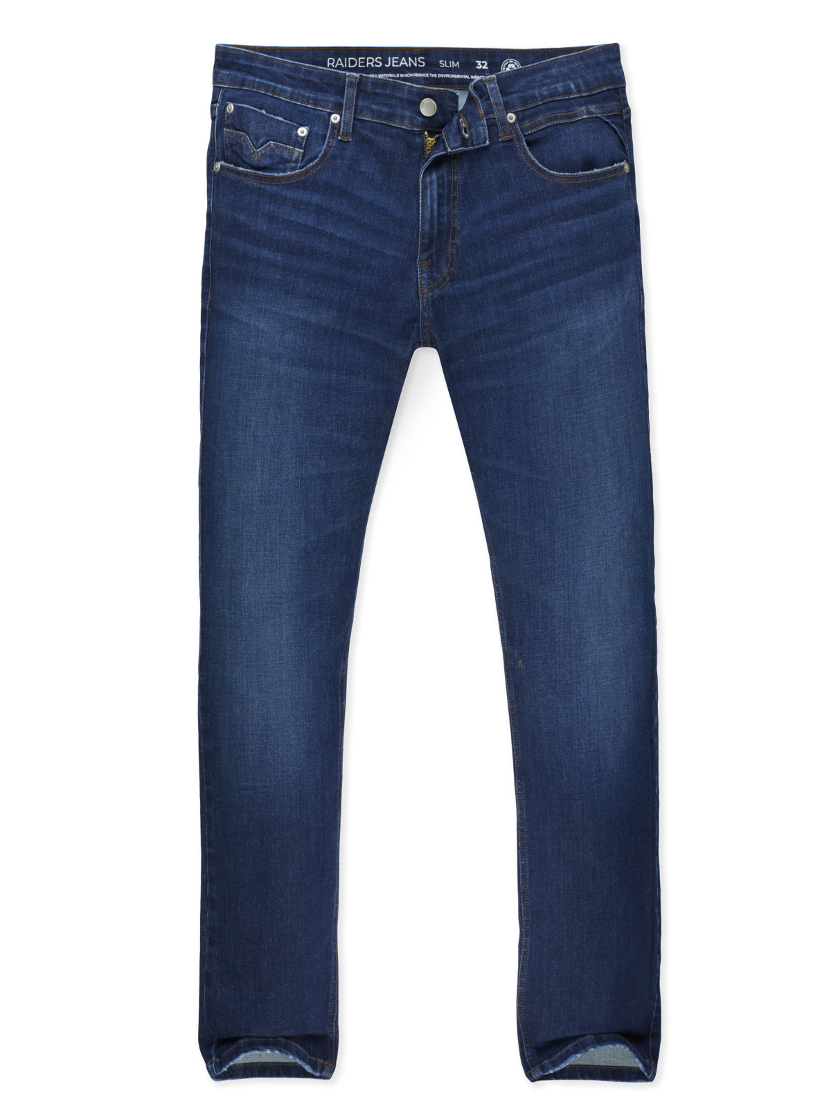 Jean modelo Anbass . Lavado con tono oscuro, localizado . Cintura estampada. Denim premium. Eco-Friendly.