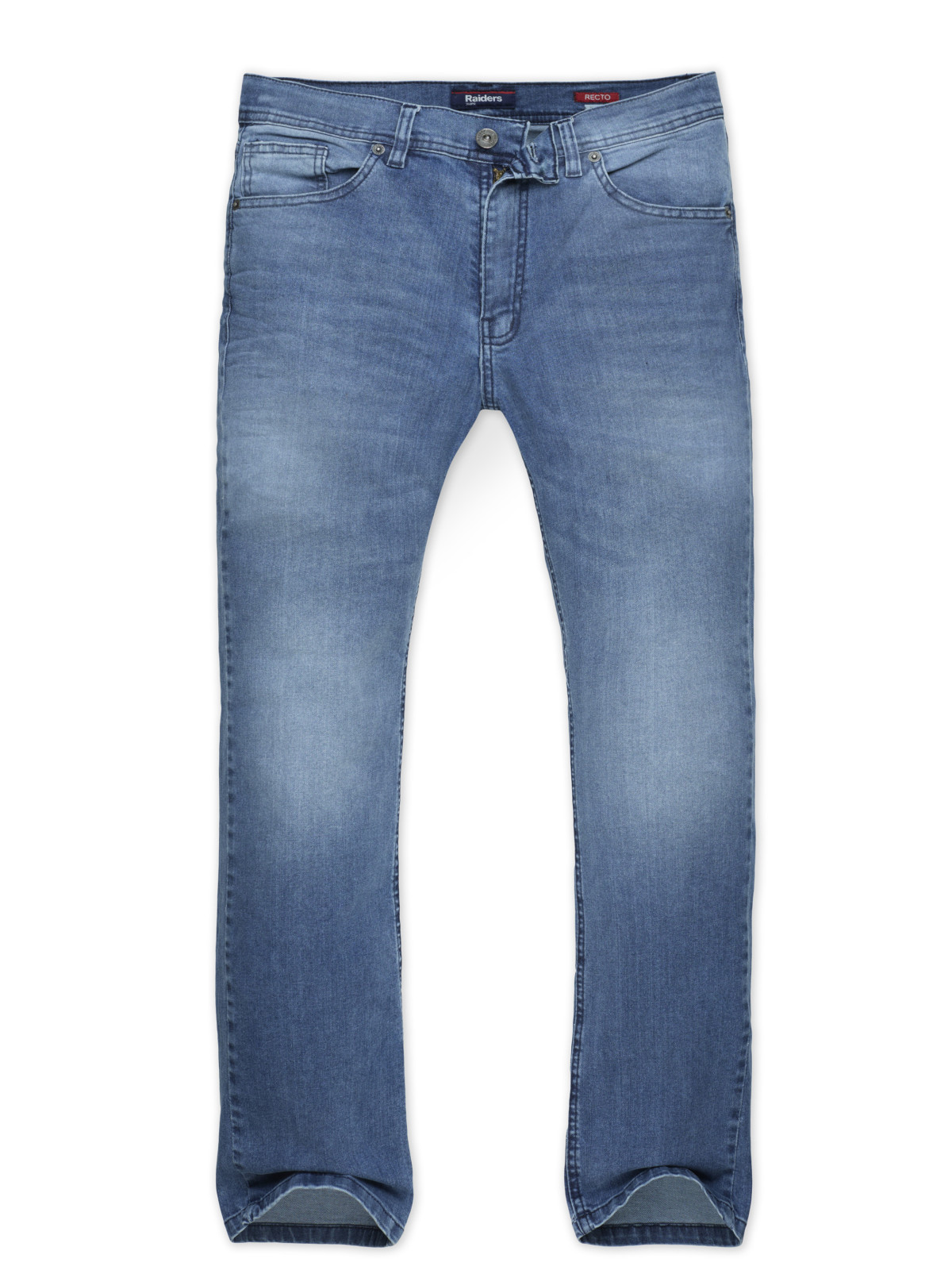 Jean modelo 411 . Lavado en tono medio, localizado con arrugas 3D.