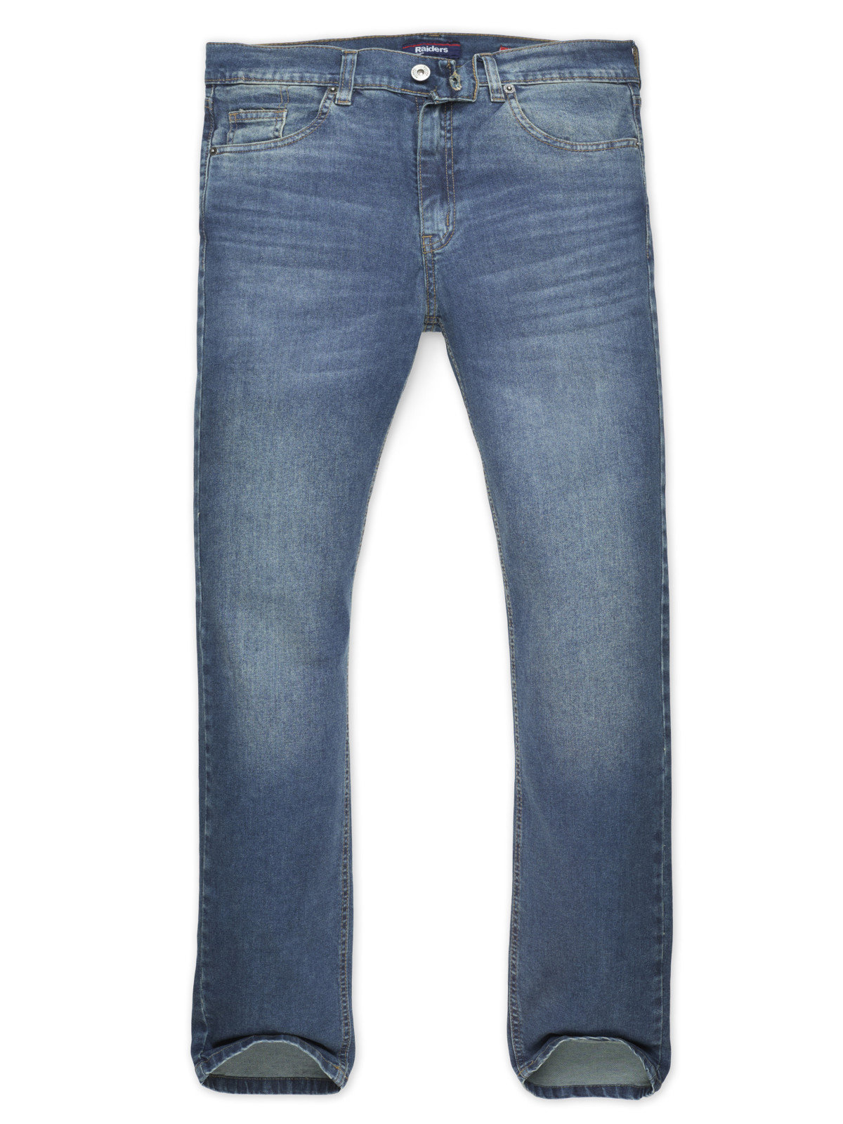 Jean modelo 411 . Lavado en tono medio, localizado y matizado más arrugas 3D.