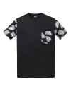 Remera con bolsillo en delantero y mangas cortas floreadas.