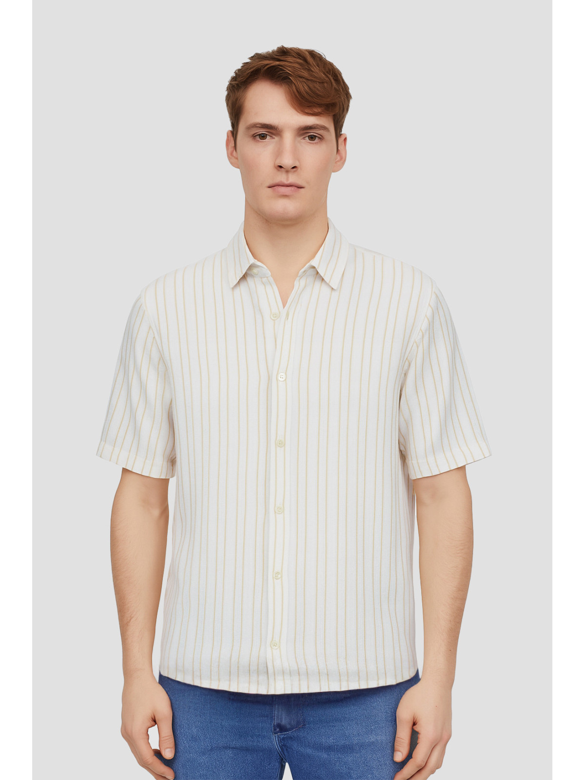 Descripción: Camisa tejida rayada. Cuello clasico. Unica variante.