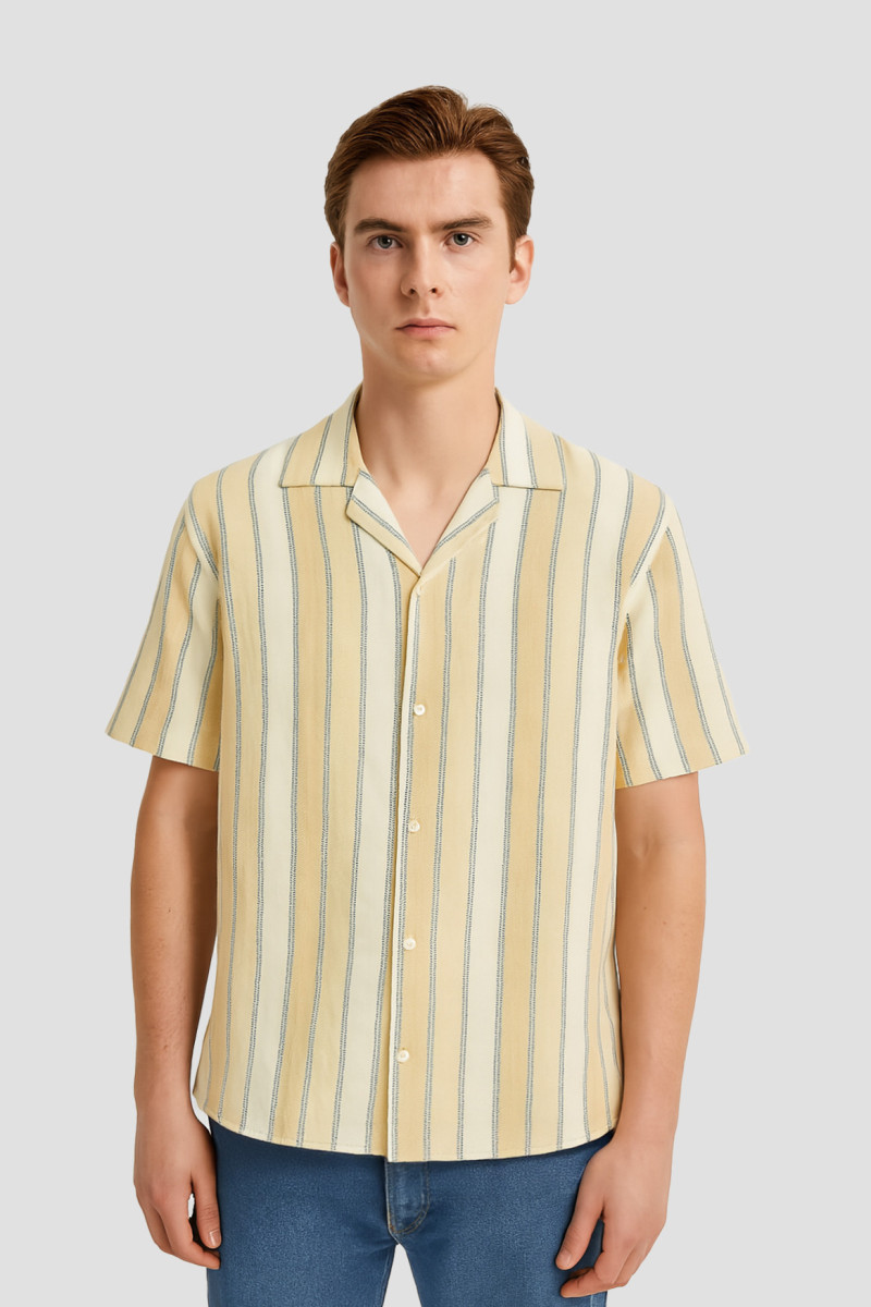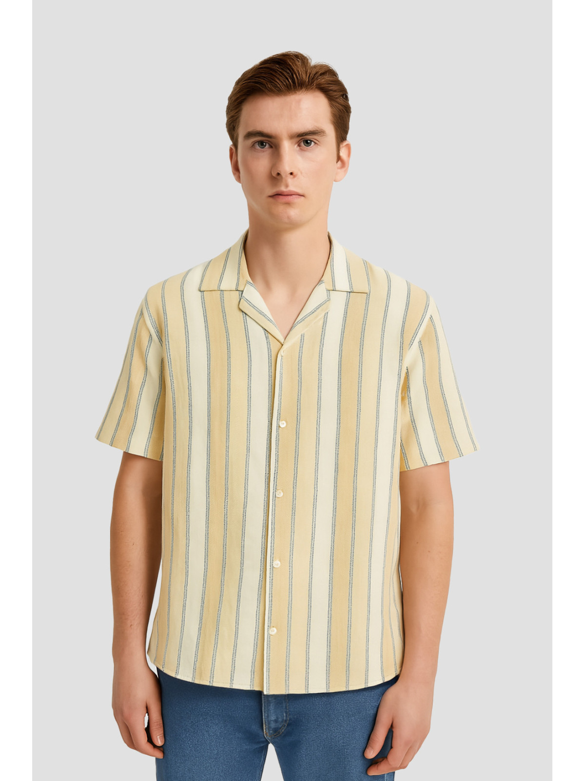 Camisa tejida rayada. Cuello Bowling. Unica variante.