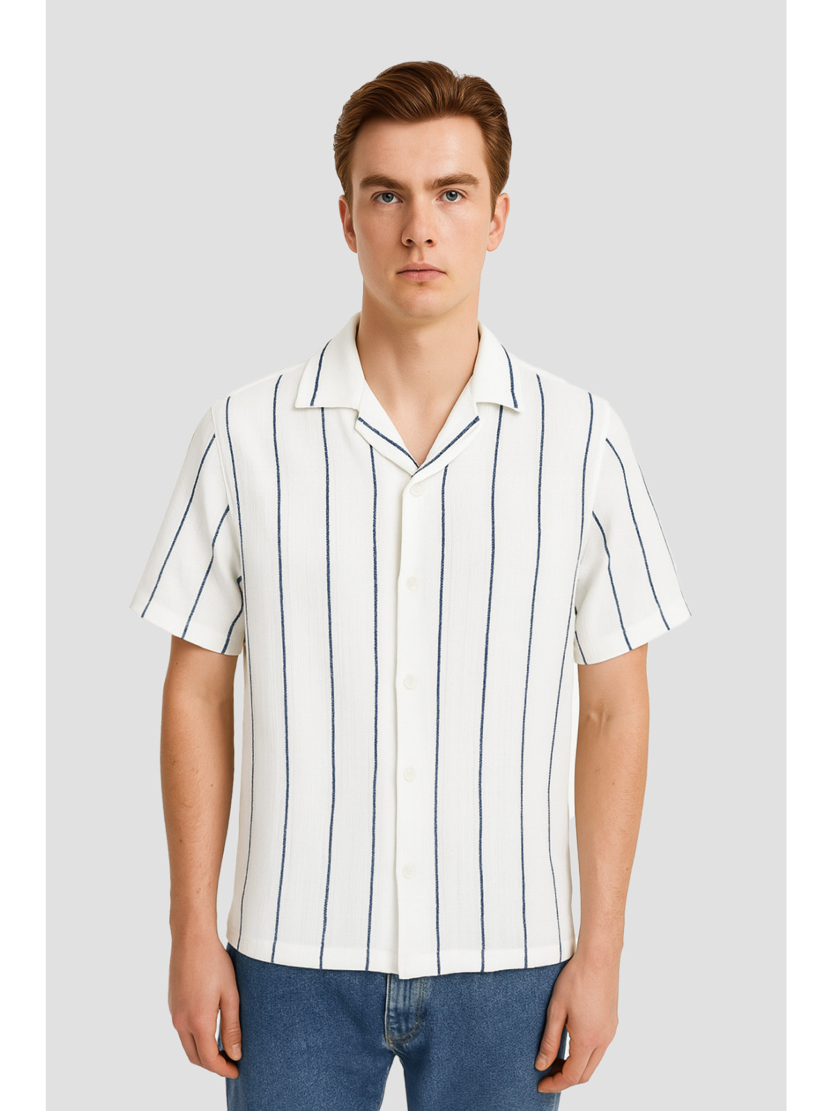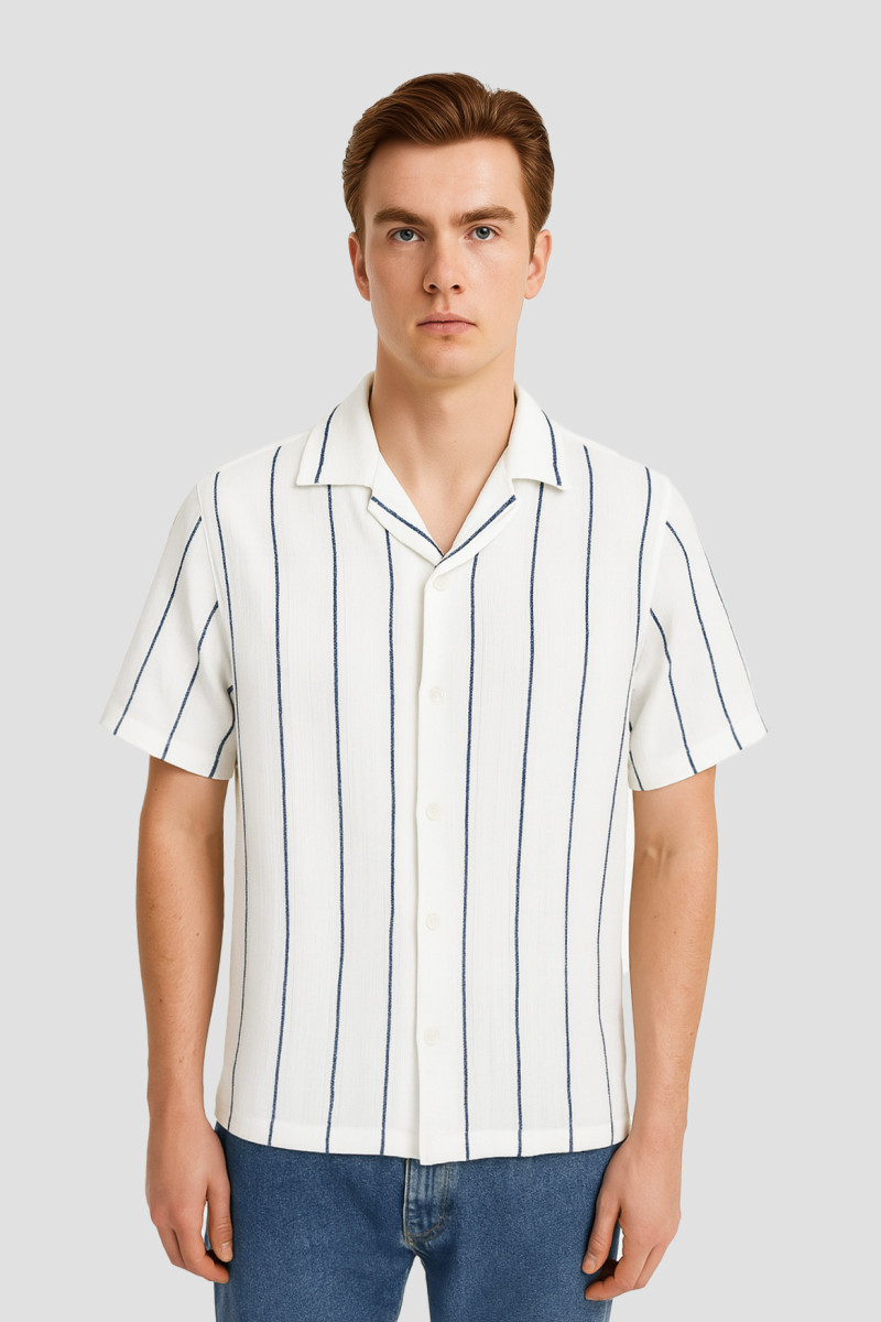 Descripción: Camisa tejida rayada. Cuello Bowling. Unica variante.