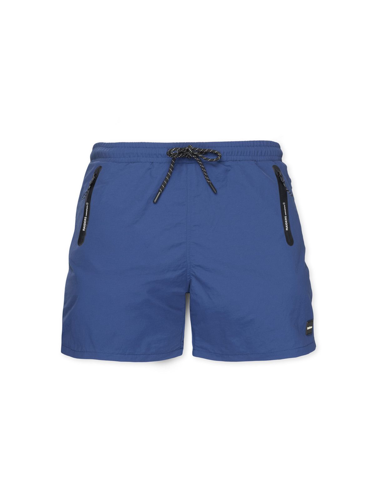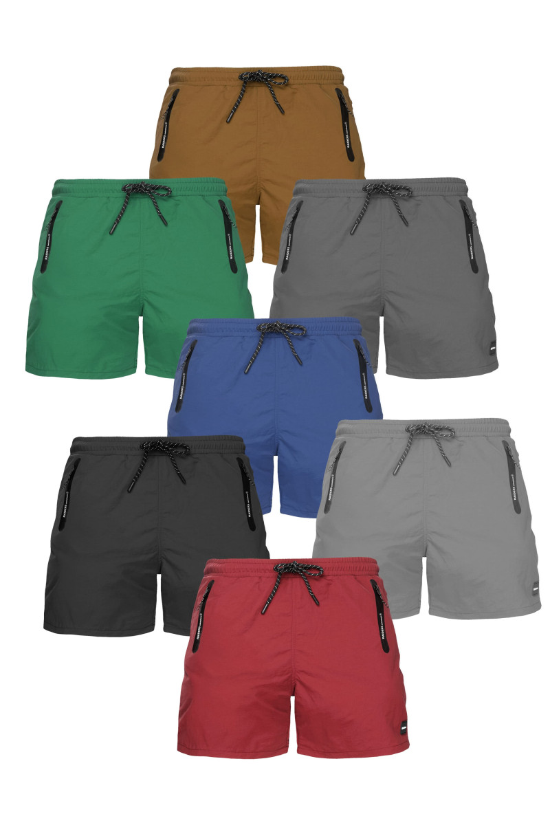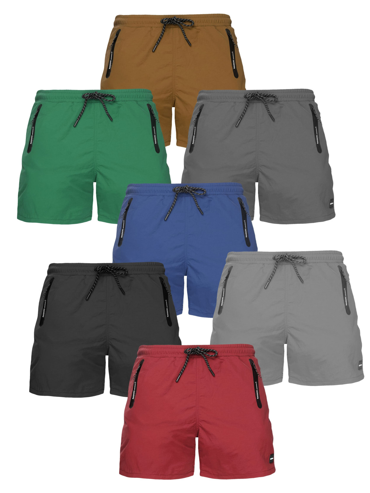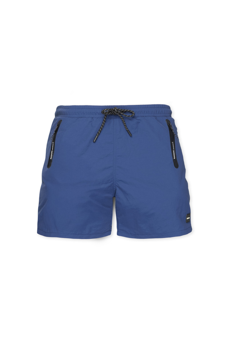 Short de baño liso, con cierres termosellados en el frente. Importado.
